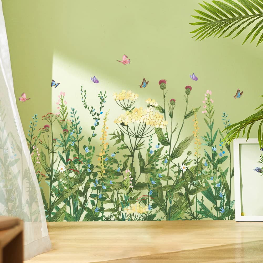 Amazon Com Rw 9131 Green Plant Wall Decals Garden Flower Vine Wall Corner Stickers Diy Removable Floral Butterfly Leaves Farmhouse Style Wall Decor For Kids Girls Bedroom Living Room Nursery Kitchen Decoration Tools